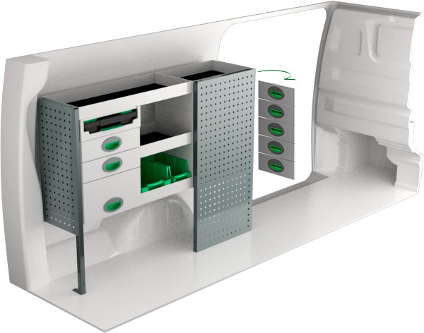Serviceinredning BxDxH 1286x300x1000 mm.
