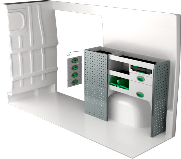 Serviceinredning BxDxH 1287x300x1000 mm.