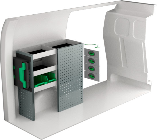 Serviceinredning BxDxH 980x300x890 mm.