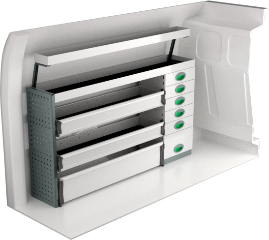 Serviceinredning BxDxH 1631x300x890/1190 mm.