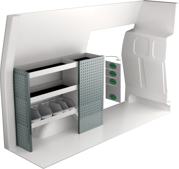 Serviceinredning BxDxH 1287x300x1000 mm.