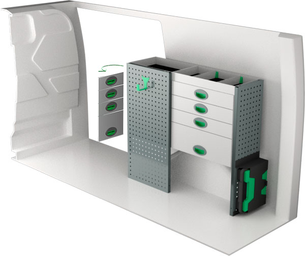 Krocktestad bilinredning till Ford Transit Custom 2933 från System Edström. Modulen ger varierade förvaringsmöjligheter och kan anpassas efter behov med tillbehör som plastbackar, krokar, lådinsatser, verktygsväskor. Du kan välja att använda de färdiga standardsystemen eller anpassa inredningen helt efter egna önskemål. Vår bilinredning har 3 års garanti om du monterar själv eller 5 år om du låter oss montera den.