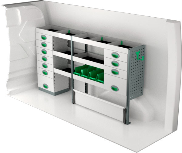 Krocktestad bilinredning till Ford Transit Custom 2933 från System Edström. Modulen ger varierade förvaringsmöjligheter och kan anpassas efter behov med tillbehör som plastbackar, krokar, lådinsatser, verktygsväskor. Du kan välja att använda de färdiga standardsystemen eller anpassa inredningen helt efter egna önskemål. Vår bilinredning har 3 års garanti om du monterar själv eller 5 år om du låter oss montera den.