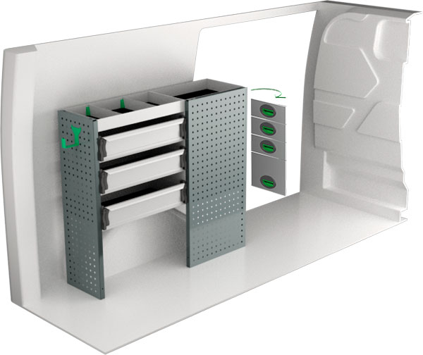 Krocktestad bilinredning till Ford Transit Custom från System Edström. Modulen ger varierade förvaringsmöjligheter och kan anpassas efter behov med tillbehör som plastbackar, krokar, lådinsatser, verktygsväskor. Du kan välja att använda de färdiga standardsystemen eller anpassa inredningen helt efter egna önskemål. Vår bilinredning har 3 års garanti om du monterar själv eller 5 år om du låter oss montera den.