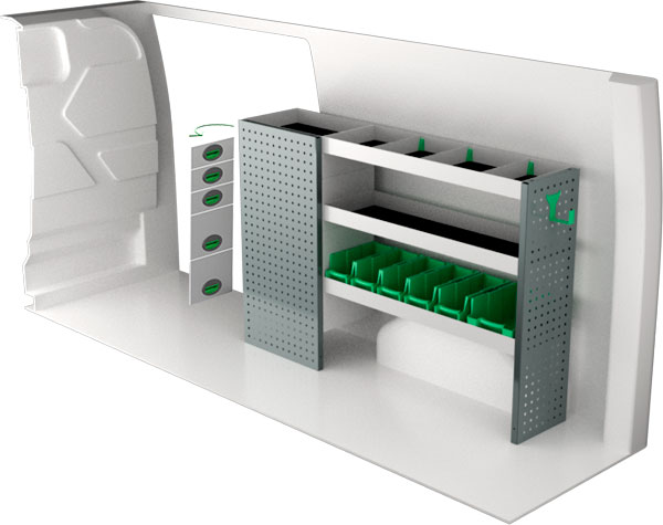 Krocktestad bilinredning till Ford Transit Custom 3300 från System Edström. Modulen ger varierade förvaringsmöjligheter och kan anpassas efter behov med tillbehör som plastbackar, krokar, lådinsatser, verktygsväskor. Du kan välja att använda de färdiga standardsystemen eller anpassa inredningen helt efter egna önskemål. Vår bilinredning har 3 års garanti om du monterar själv eller 5 år om du låter oss montera den.