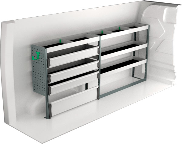 Stommarna kan i sitt enklaste utförande kombineras med fasta hyllplan med säkerhetskant som ger mycket fria ytor. En panelplåt på stommens utsida ger plats för behovsstyrda tillbehör som exempelvis olika hållare, klädhängare eller varför inte en pappershållare. Dessa är enkla att komplettera med i efterhand när nya behov uppstår. Modulerna går också att variera med utdragbara kassetter eller dropfronter som ger förenklad åtkomst. Kombinera med lådavdelare och plastbackar som bibehåller ordningen för artiklar av den mindre storleken.
