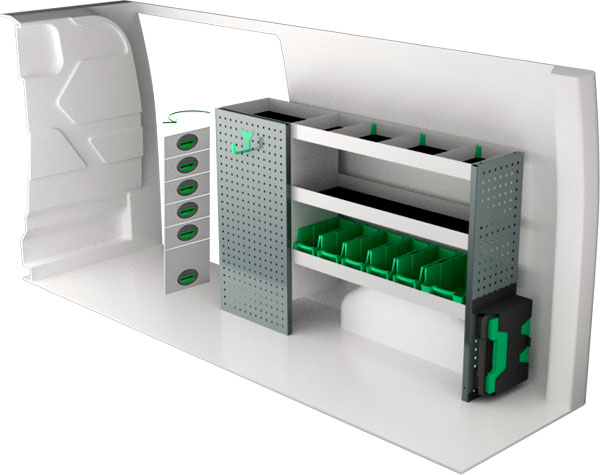 Krocktestad bilinredning till Ford Transit Custom 3300 från System Edström. Modulen ger varierade förvaringsmöjligheter och kan anpassas efter behov med tillbehör som plastbackar, krokar, lådinsatser, verktygsväskor. Du kan välja att använda de färdiga standardsystemen eller anpassa inredningen helt efter egna önskemål. Vår bilinredning har 3 års garanti om du monterar själv eller 5 år om du låter oss montera den.