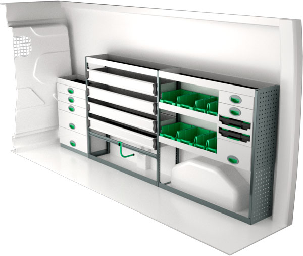 Krocktestad bilinredning till Ford Transit FWD L3H2 14- från System Edström. Modulen ger varierade förvaringsmöjligheter och kan anpassas efter behov med tillbehör som plastbackar, krokar, lådinsatser, verktygsväskor. Du kan välja att använda de färdiga standardsystemen eller anpassa inredningen helt efter egna önskemål. Vår bilinredning har 3 års garanti om du monterar själv eller 5 år om du låter oss montera den.