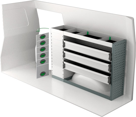Serviceinredning BxDxH 1330x300x890 mm.