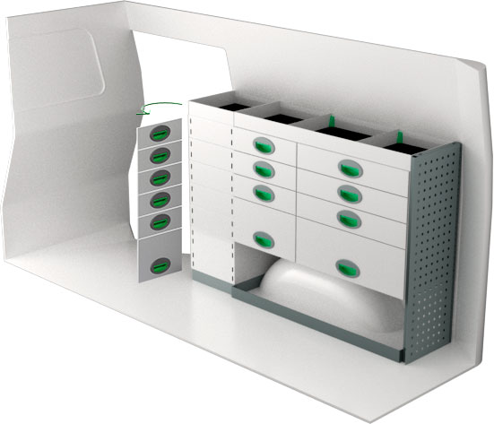 Serviceinredning BxDxH 1330x300x890 mm.