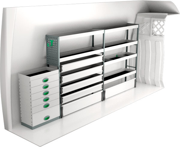 Serviceinredning BxDxH 3053x300x1440 mm.