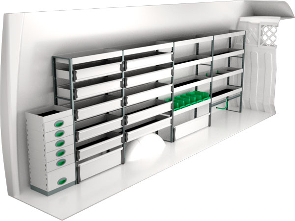 Serviceinredning BxDxH 4322x300x1440 mm.