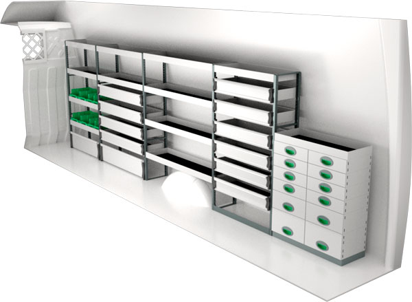 Serviceinredning BxDxH 4680x300x1440 mm.
