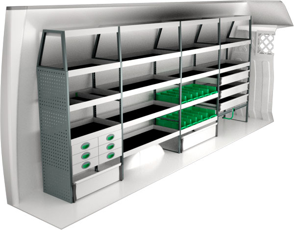 Serviceinredning BxDxH 4110x470x1840 mm.