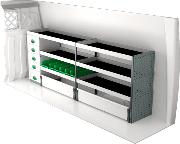 Serviceinredning BxDxH 2661x470x1000 mm.
