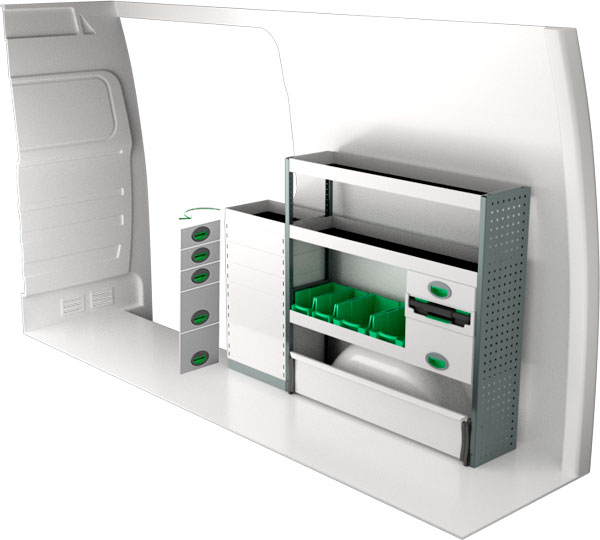 Krocktestad bilinredning till Mercedes Sprinter 3665 från System Edström. Modulen ger varierade förvaringsmöjligheter och kan anpassas efter behov med tillbehör som plastbackar, krokar, lådinsatser, verktygsväskor. Du kan välja att använda de färdiga standardsystemen eller anpassa inredningen helt efter egna önskemål. Vår bilinredning har 3 års garanti om du monterar själv eller 5 år om du låter oss montera den.