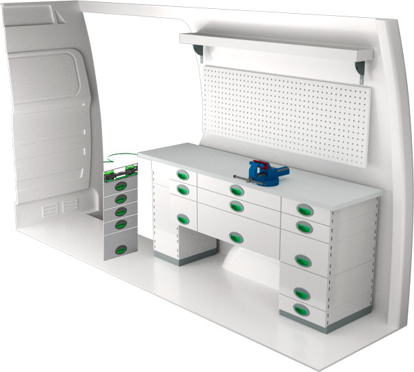 Krocktestad bilinredning till Mercedes Sprinter 3665 från System Edström. Modulen ger varierade förvaringsmöjligheter och kan anpassas efter behov med tillbehör som plastbackar, krokar, lådinsatser, verktygsväskor. Du kan välja att använda de färdiga standardsystemen eller anpassa inredningen helt efter egna önskemål. Vår bilinredning har 3 års garanti om du monterar själv eller 5 år om du låter oss montera den.