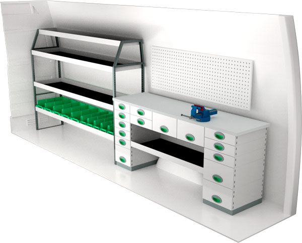 Krocktestad bilinredning till Mercedes Sprinter 4325 från System Edström. Modulen ger varierade förvaringsmöjligheter och kan anpassas efter behov med tillbehör som plastbackar, krokar, lådinsatser, verktygsväskor. Du kan välja att använda de färdiga standardsystemen eller anpassa inredningen helt efter egna önskemål. Vår bilinredning har 3 års garanti om du monterar själv eller 5 år om du låter oss montera den.