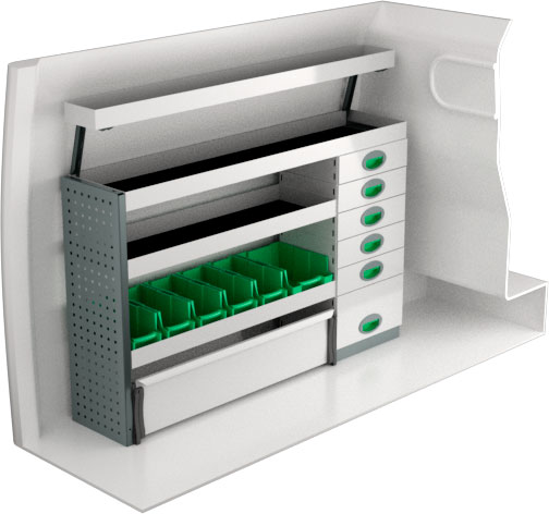 Serviceinredning BxDxH 1422x300x890/1190 mm.