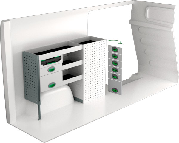 Serviceinredning BxDxH 1286x300x890 mm.
