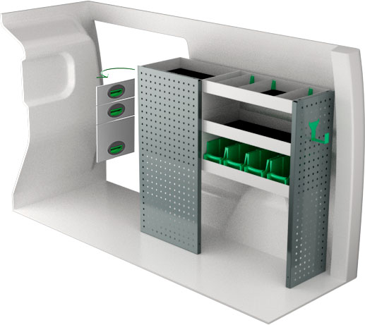 Serviceinredning BxDxH 1108x300x1000 mm.