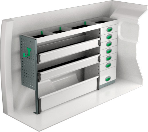 Serviceinredning BxDxH 1601x300x1000 mm.