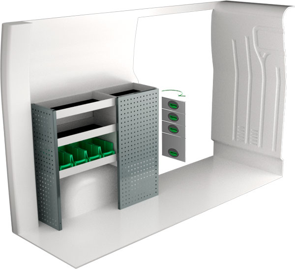 Serviceinredning BxDxH 1108x300x1000 mm.