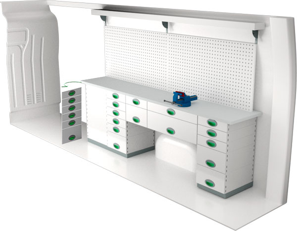 Serviceinredning BxDxH 2430x470x855 mm.