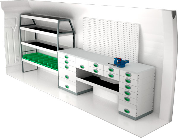 Serviceinredning BxDxH 3805x470x855/1526 mm.