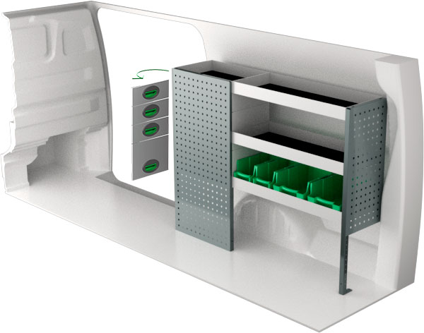 Serviceinredning BxDxH 1286x300x1000 mm.
