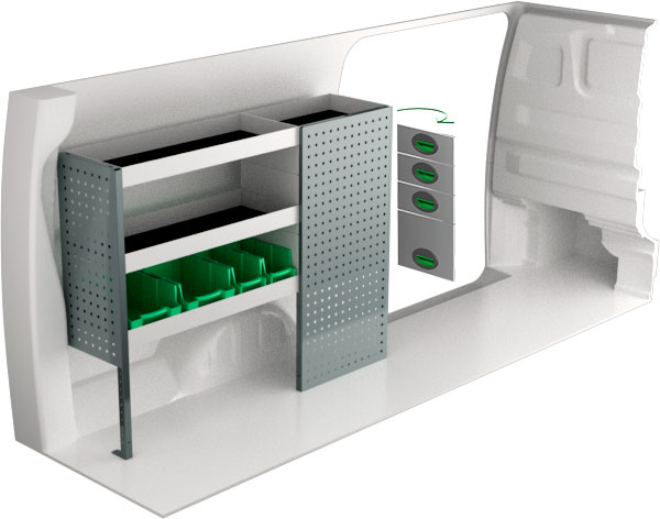 Serviceinredning BxDxH 1286x300x1000 mm.