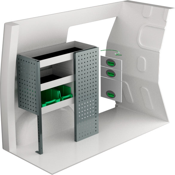 Serviceinredning BxDxH 727x300x890 mm.