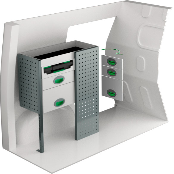 Serviceinredning BxDxH 727x300x890 mm.