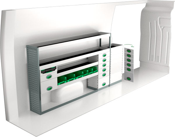 Serviceinredning BxDxH 2495x300x1220 mm.