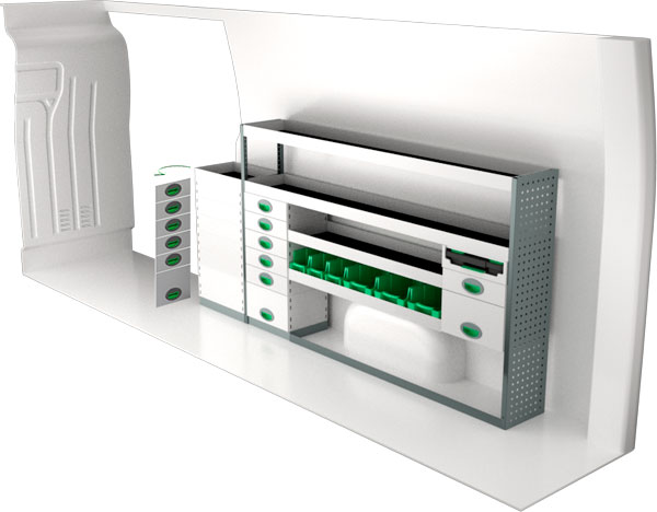 Serviceinredning BxDxH 2495x300x1220 mm.