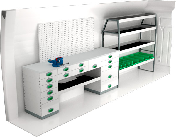 Serviceinredning BxDxH 3805x470x855/1526 mm.