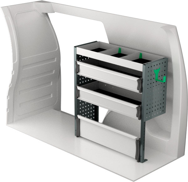 Krocktestad bilinredning till Volkswagen Caddy 15- från System Edström. Modulen ger varierade förvaringsmöjligheter och kan anpassas efter behov med tillbehör som plastbackar, krokar, lådinsatser, verktygsväskor. Du kan välja att använda de färdiga standardsystemen eller anpassa inredningen helt efter egna önskemål. Vår bilinredning har 3 års garanti om du monterar själv eller 5 år om du låter oss montera den.