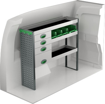 Stommarna kan i sitt enklaste utförande kombineras med fasta hyllplan med säkerhetskant som ger mycket fria ytor. En panelplåt på stommens utsida ger plats för behovsstyrda tillbehör som exempelvis olika hållare, klädhängare eller varför inte en pappershållare. Dessa är enkla att komplettera med i efterhand när nya behov uppstår. Modulerna går också att variera med utdragbara kassetter eller dropfronter som ger förenklad åtkomst. Kombinera med lådavdelare och plastbackar som bibehåller ordningen för artiklar av den mindre storleken.