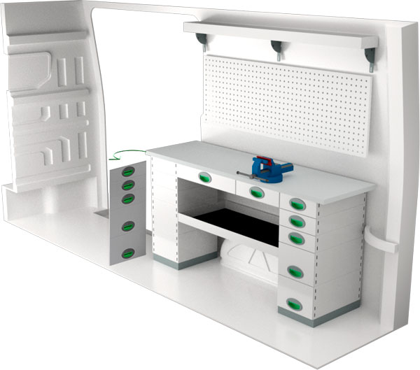 Krocktestad bilinredning till Volkswagen Crafter 16- L3H3 från System Edström. Modulen ger varierade förvaringsmöjligheter och kan anpassas efter behov med tillbehör som plastbackar, krokar, lådinsatser, verktygsväskor. Du kan välja att använda de färdiga standardsystemen eller anpassa inredningen helt efter egna önskemål. Vår bilinredning har 3 års garanti om du monterar själv eller 5 år om du låter oss montera den.