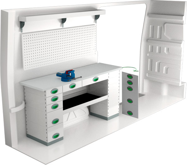 Krocktestad bilinredning till Volkswagen Crafter 16- L3H3 från System Edström. Modulen ger varierade förvaringsmöjligheter och kan anpassas efter behov med tillbehör som plastbackar, krokar, lådinsatser, verktygsväskor. Du kan välja att använda de färdiga standardsystemen eller anpassa inredningen helt efter egna önskemål. Vår bilinredning har 3 års garanti om du monterar själv eller 5 år om du låter oss montera den.