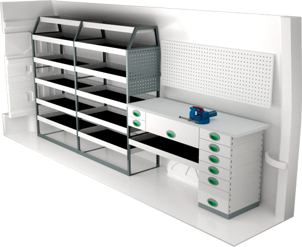 Krocktestad bilinredning till Volkswagen Crafter 16- L3H3 från System Edström. Modulen ger varierade förvaringsmöjligheter och kan anpassas efter behov med tillbehör som plastbackar, krokar, lådinsatser, verktygsväskor. Du kan välja att använda de färdiga standardsystemen eller anpassa inredningen helt efter egna önskemål. Vår bilinredning har 3 års garanti om du monterar själv eller 5 år om du låter oss montera den.
